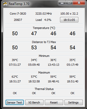 My temps are fine ? I know for this cpu the TCASE is 66.8°C. In most benchmarks i did under full load cores 2,3,4 wasn't more than 66c but the first core always is running hotter i saw 72cmax.